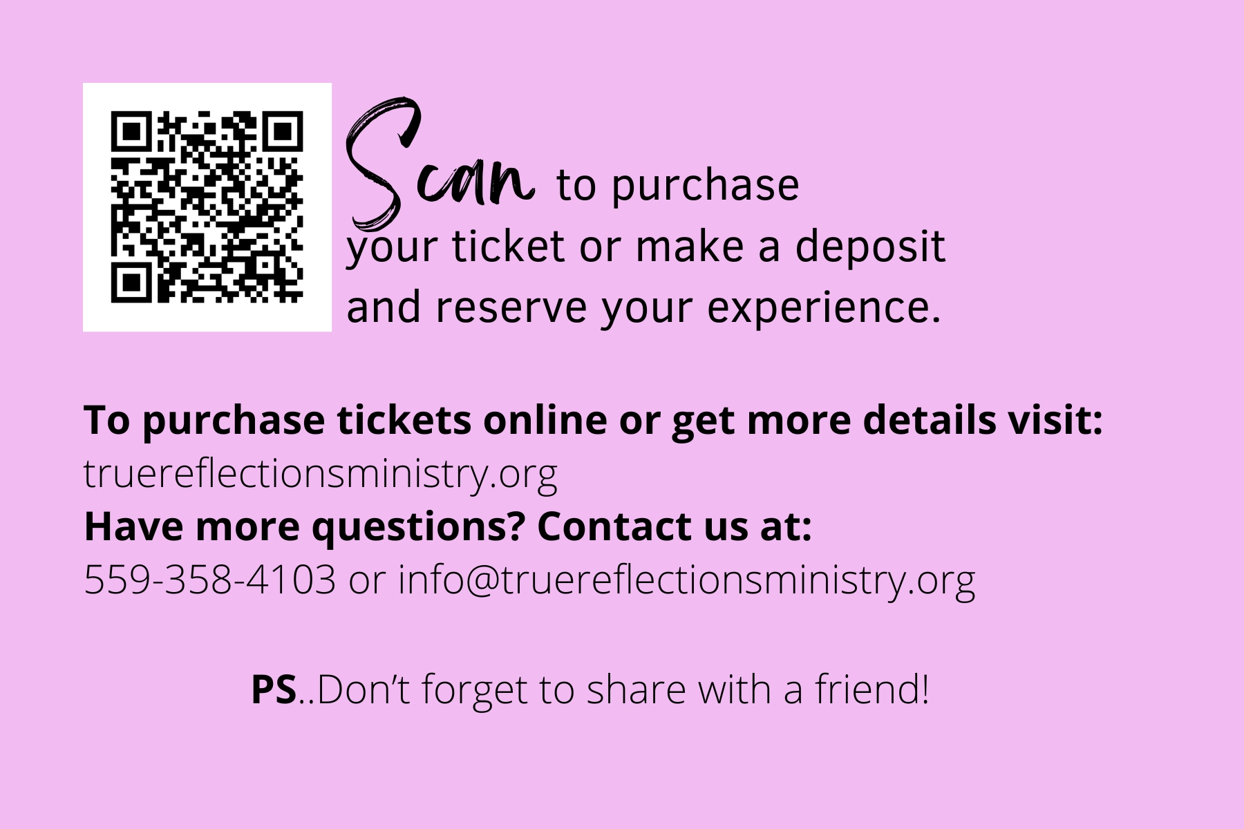 This can't be easier...Scan the QR code and let the savings begin. Don't forget to tell a friend about this great opportunity. Christmas is around the corner. This could be just the right gift for someone. Whether you gift them the deposit or pay for their entire ticket... she is sure to love it!